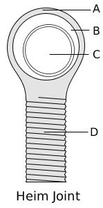 A rod end bearing, also known as a heim joint (N. America) or rose joint (U.K. and elsewhere), is a mechanical articulating joint. Such joints are used on the ends of control rods, steering links, tie rods, or anywhere a precision articulating joint is required. A ball swivel with an opening through which a bolt or other attaching hardware may pass is pressed into a circular casing with a threaded shaft attached. The threaded portion may be either male or female.